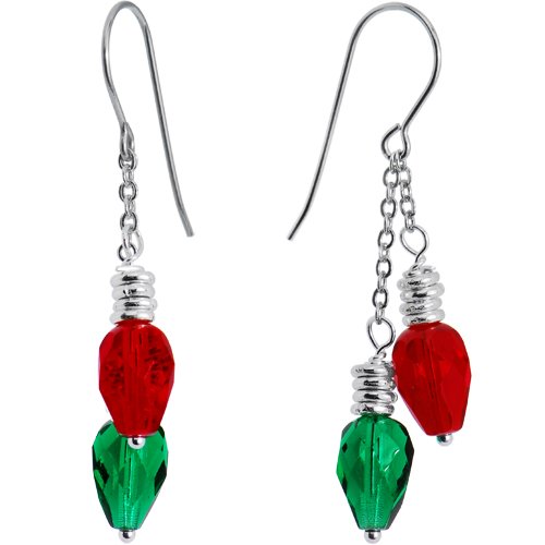 A festive pair of Christmas earrings, perfect for celebrating the holiday season. These holiday light earrings a sure to spread holiday cheer.. Specifications: Approximately 1.5 Inch Length, Silver Plated Fishhook Earwires, Glass. Red Green Christmas Lights Earrings More Detail..