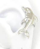 A beautifully detailed and sleek dolphin ear cuff jumps out of the water to rest on your Left ear. One of the ocean's most intelligent creatures, the dolphin stands out and dances amongst the cresting waves. It grips to the edge of your ear and does not need piercing to hold it. This dolphin ear cuff is for the Left ear only. Read More...Sterling Silver Dolphin Ear Cuff Left Porpoise Earring Technical Details