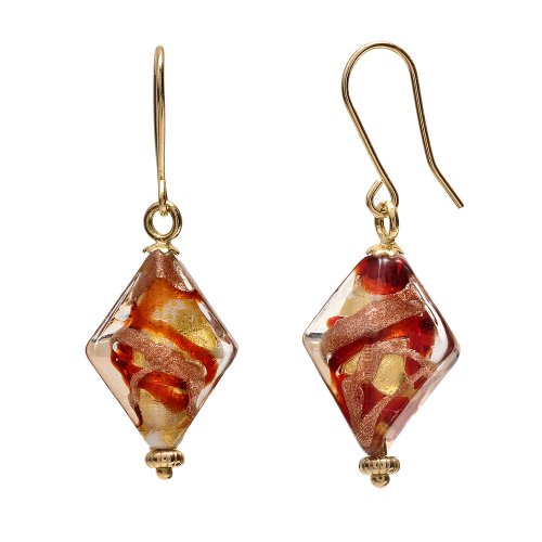 Looking for 14K Yellow Gold Red Murano Glass Diamond Shaped Earrings lowest prices.