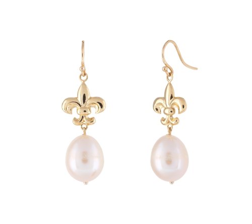 Not expensive 10k Yellow Gold Fleur-de-Lis Freshwater Cultured Pearl Dangle Earrings Features