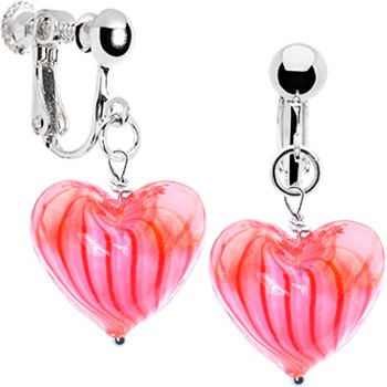 Adorable glass heart earrings. Non-pierced earrings. Handmade Screw back clip earrings. Specifications: Approximately 1.25" Length, Silver Plated Copper Clip-On Earrings. Peppermint Glass Puffed Heart Clip Earrings More Detail..