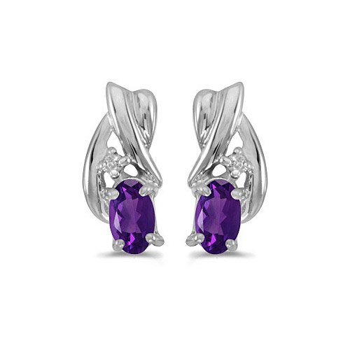 These 14k white gold oval amethyst and diamond earrings feature 5x3 mm genuine natural amethysts with a 0.46 ct total weight. and then update cheapest prices immediately. Limited time Only!