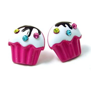 Cost-effective Juicy Inspired 1/2'' Flat Dark Pink/Fuchsia Cupcake Stud Earrings with Sparkling Rainbow Crystals review