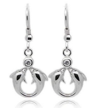 Cut price Rhodium Plated 925 Silver Diamond Accent Dolphin Earrings-se3115 :: Description