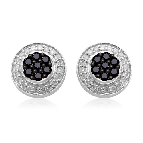Competitive Sterling Silver Black and White Diamond Cluster Earrings (1/2 cttw, I-J Color, I2-I3 Clarity) Specifications