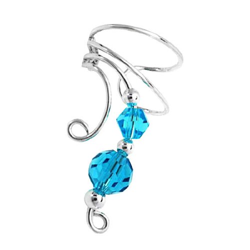 Cheaper Sterling Silver Left Only Two Blue Crystal Beads Wave Ear Cuff Wrap Features