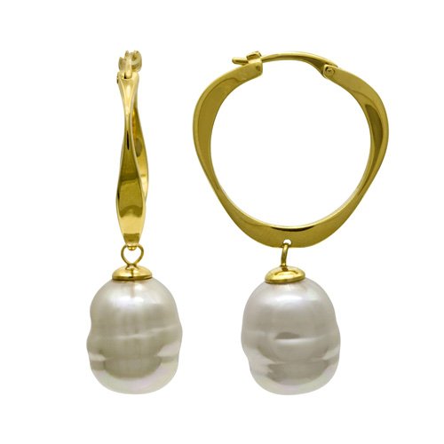 12mm white baroque pearl on an 18kt gold vermeil hoop earring by Majorica Jewelry.