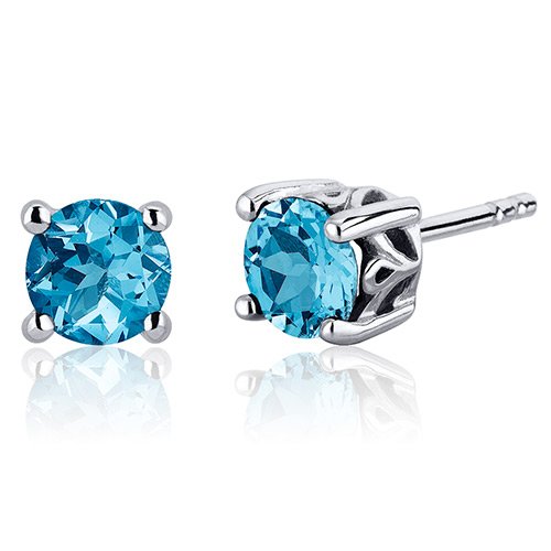 Poor Scroll Design 2.00 Carats Swiss Blue Topaz Round Cut Stud Earrings in Sterling Silver Review