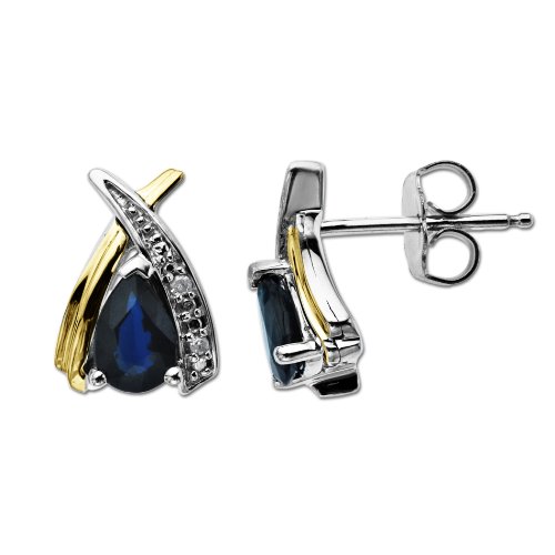=======================================================================================An affordable Sterling Silver and 14k Yellow Gold Diamond and Oval Blue Sapphire Earrings (0.01cttw, I-J Color, I3 Clarity)