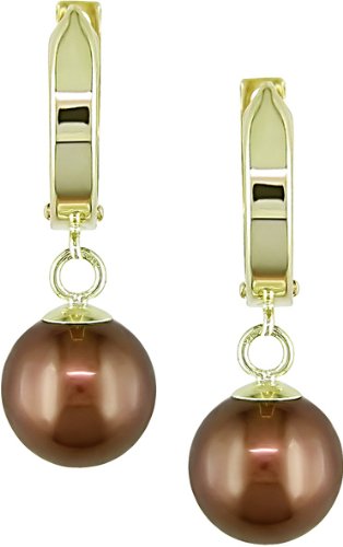 Very low cost 14K Yellow Gold 8-9mm Brown Tahitian Pearl Huggie Earrings customers ratings