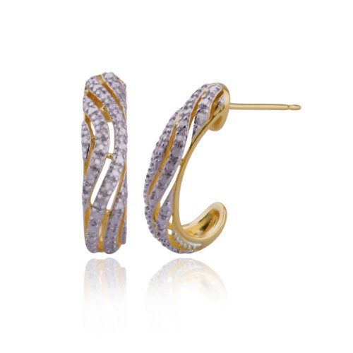 Buy Cheap 18k Yellow Gold Plated Sterling Silver Genuine Diamond Accent J-Hoop Earrings for $