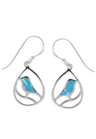 Boma Sterling Silver Turquoise Bird Earrings - These silver teardrop earrings feature a genuine turquoise inlaid bird. Colors may vary for natural stones. Boma Jewelry: Guaranteed for Life. CDA 1447TQ