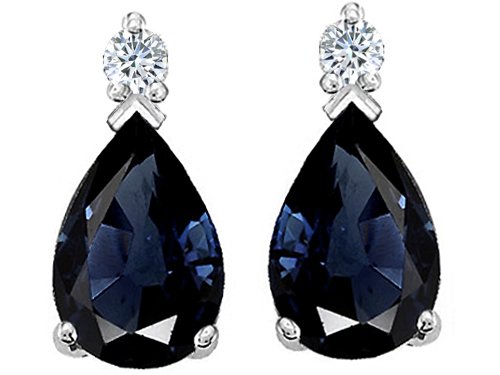 Genuine 8x6mm Sapphire and Diamond Earrings crafted in 14 kt White Gold 2 Stones 2.00 Carats Pear Shape Sapphires 8x6mm. Color: Blue Clarity: Eye Clean, 2 Stones 0.06 Carats Round Diamonds Color: I Clarity: SI1 - SI2 Made in USA FREE LIFETIME WARRANTY, GIFT BAG AND GIFT CARD! Finejewelers Style Number: 24460. More Detail..